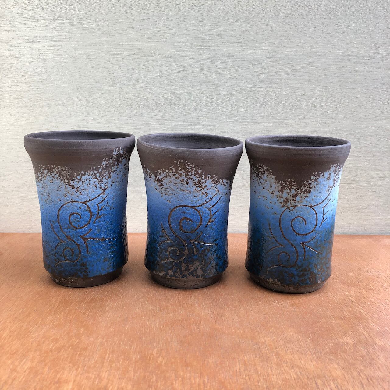 児島和孝/牡蠣殻燻焼締ビアカップ(青)
