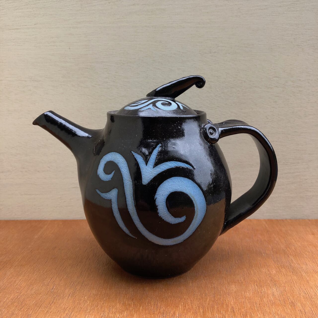 児島和孝/黒釉青抜文ティーポット
